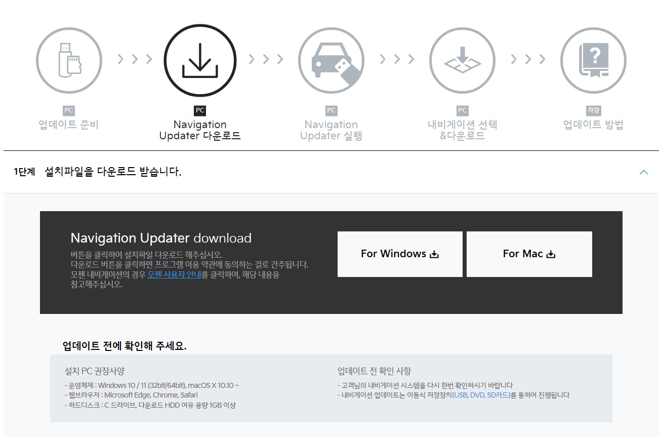 3. 네비게이션 업데이트 프로그램 다운로드하기