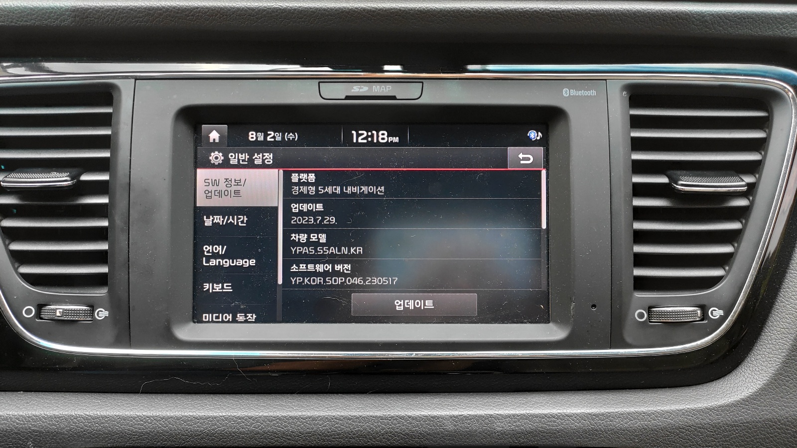 (전체메뉴 → 설정 → 일반 순서대로 클릭하면 차량 모델, 소프트웨어 버전을 확인할 수 있다.)