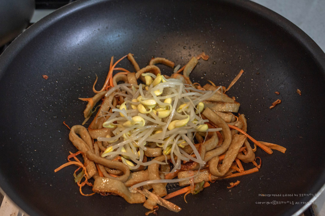 일반 어묵볶음이 지겹다고 느껴지면 콩나물을 넣어서 잡채 비슷하게?